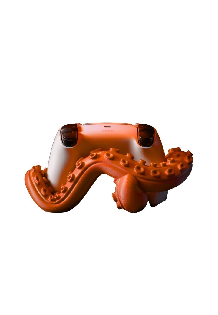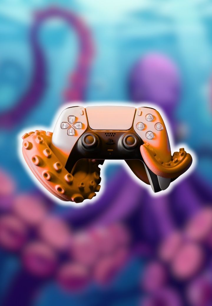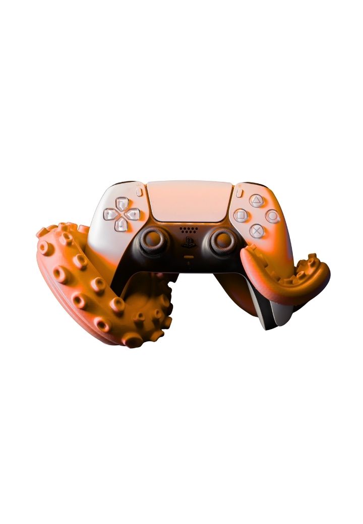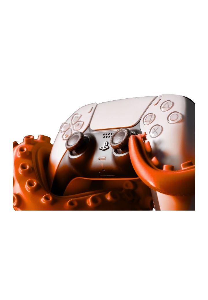 Além de servir como uma peça de decoração singular, o suporte em formato de tentáculos é extremamente funcional. Ele mantém seu controle PS5 em segurança ao mesmo tempo que ajuda a organizar sua área de games de maneira eficiente. Seja no seu quarto, sala de estar ou setup gamer dedicado, este suporte é o complemento perfeito para agregar praticidade e personalidade ao seu espaço.