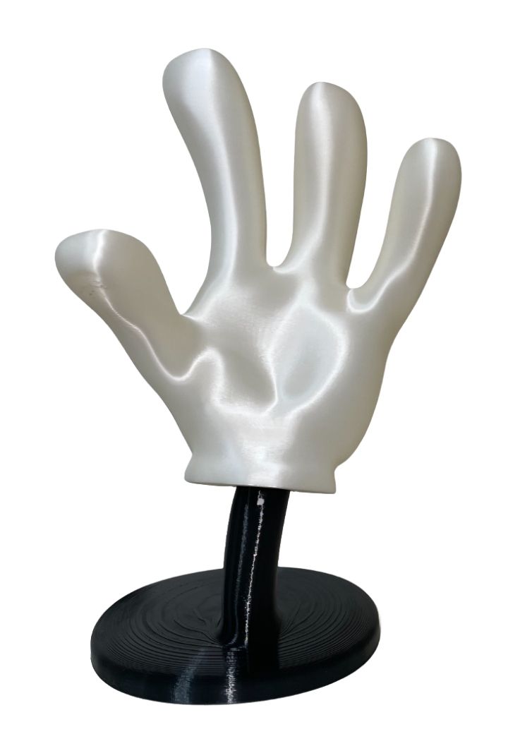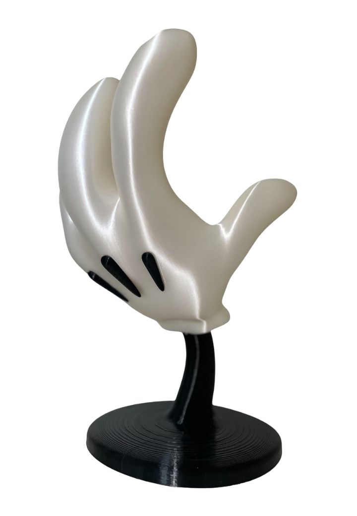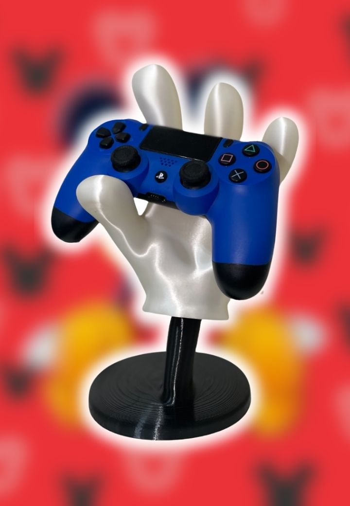 Inspirado no icônico personagem Mickey Mouse, este suporte foi projetado para impressionar. Sua forma de mão confere um visual lúdico e instigante, transformando qualquer setup gamer em um espaço mais convidativo e criativo. Feito em PLA branco e preto, o acabamento suave e uniforme garante uma peça de alta qualidade e durabilidade.