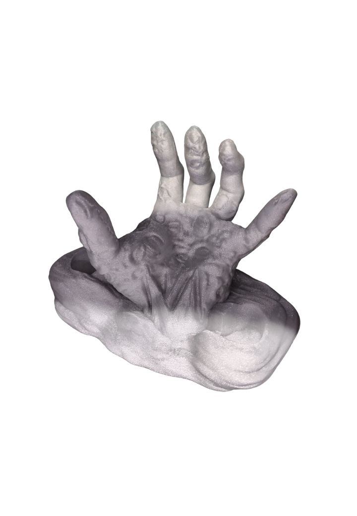 Transforme o modo como você organiza e exibe seu controle PS5 com este suporte incrivelmente estiloso. Feito para os fãs de design criativo, este suporte apresenta uma mão de zumbi assustadoramente detalhada, na tonalidade cinza claro, cuidadosamente impressa em PLA. Valorize a experiência de jogar com acessórios que refletem sua personalidade e estilo exclusivo!